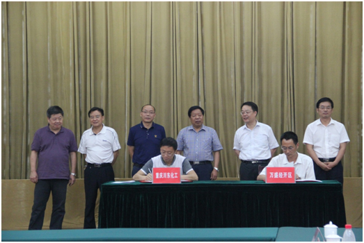 6月11日下午,公司董事長高光凡、黨委書記李國勝、總經(jīng)理李桂君率集團領(lǐng)導(dǎo)班子冒雨趕赴萬盛,與萬盛經(jīng)開區(qū)管理委會簽定精細化工項目投資協(xié)議。此舉標志著渝川東進駐萬盛經(jīng)開區(qū)煤電化園區(qū)取得實質(zhì)性進展。
